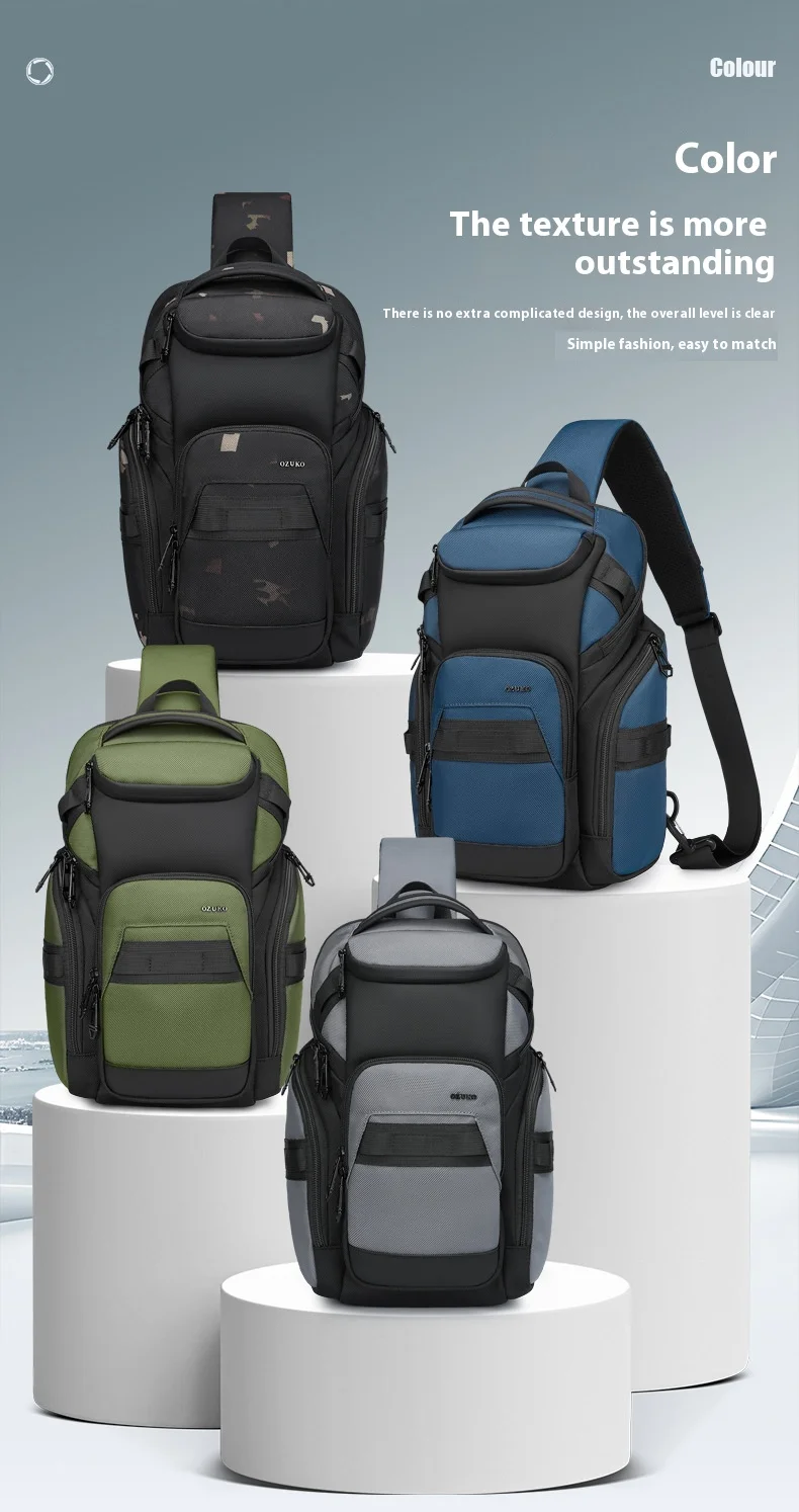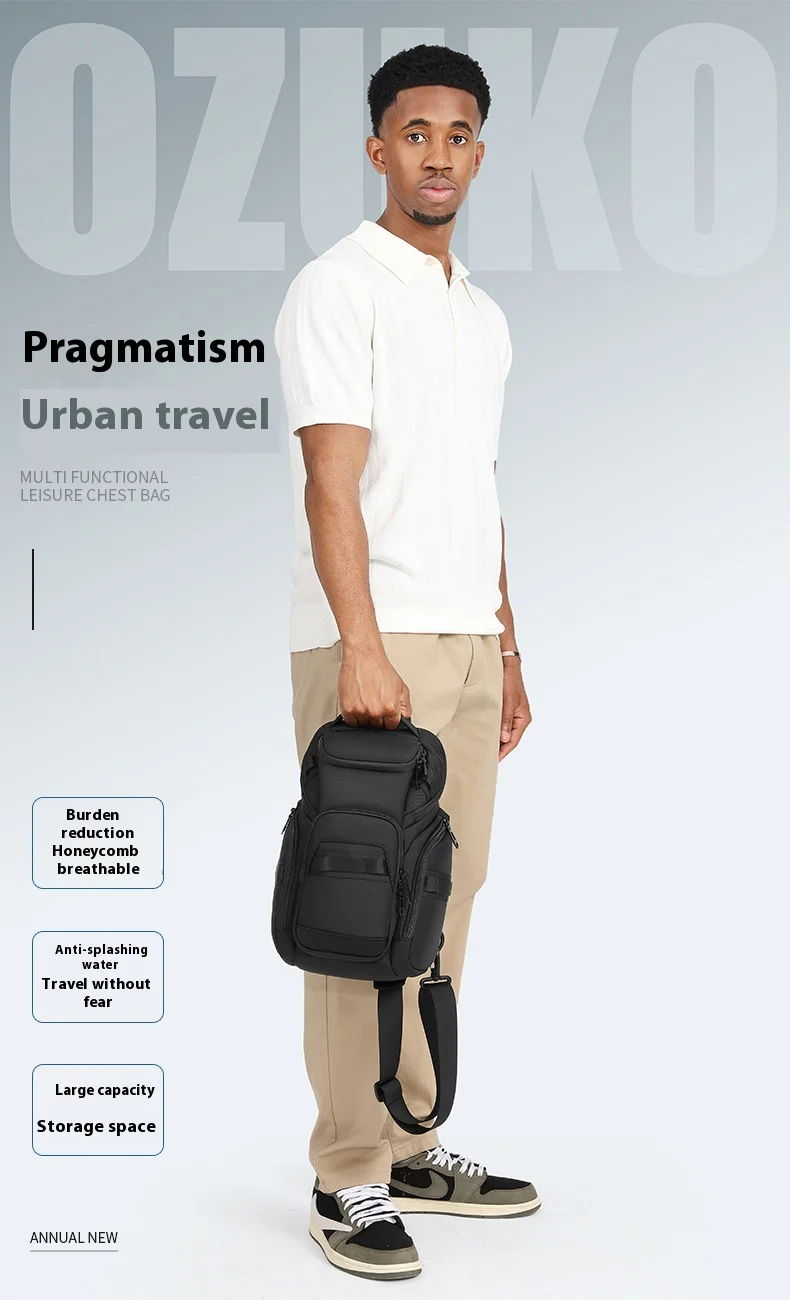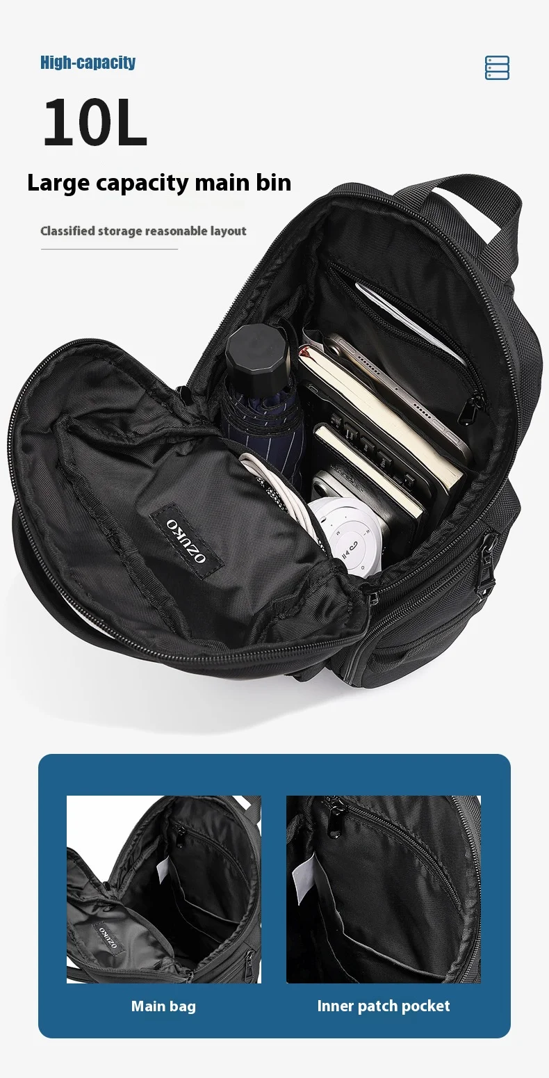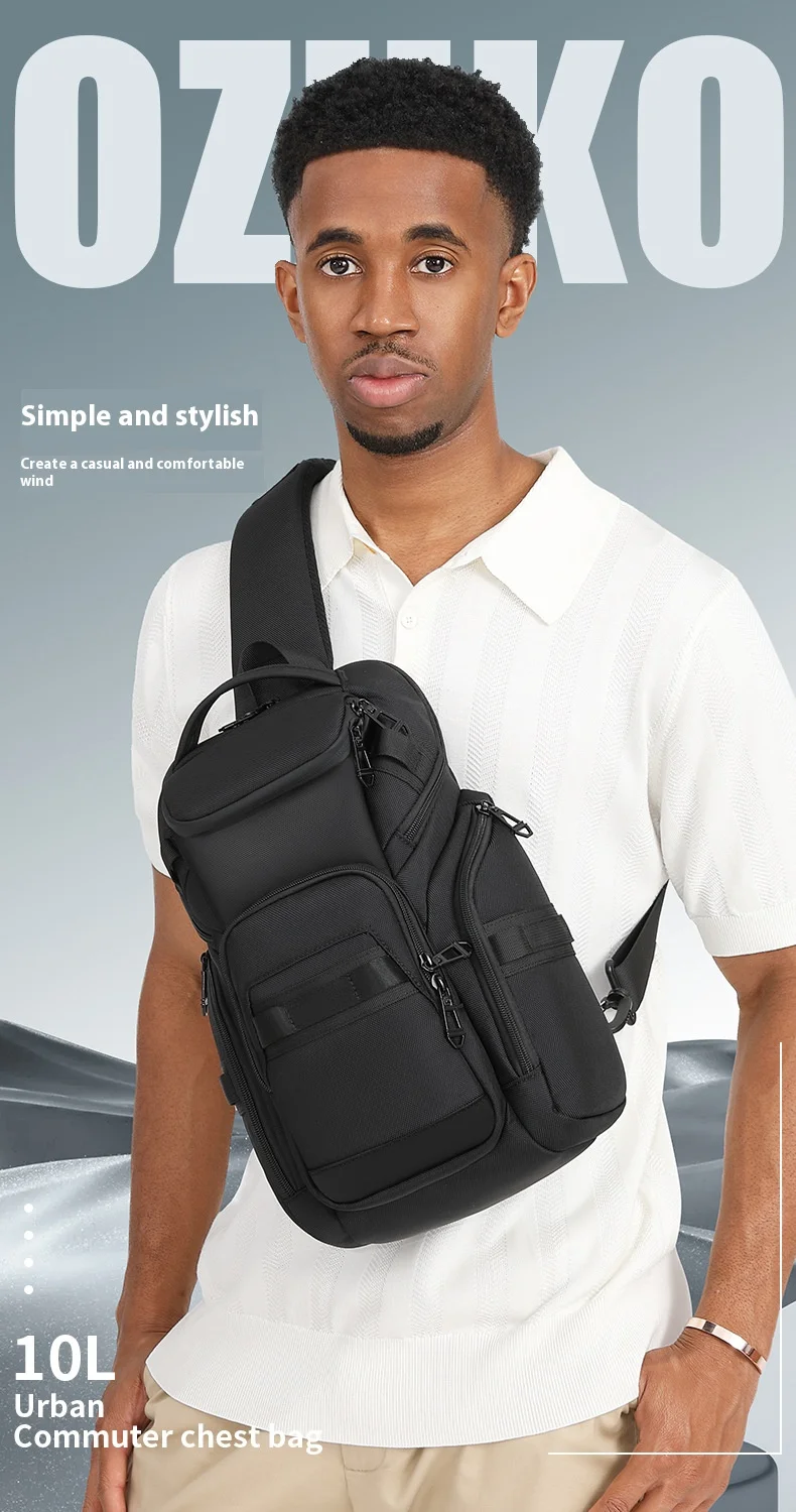 OZUKO Business Commuter Men's Chest Bag Fashion Multi-functional Shoulder Bag Lightweight Travel Waterproof Crossbody Bag