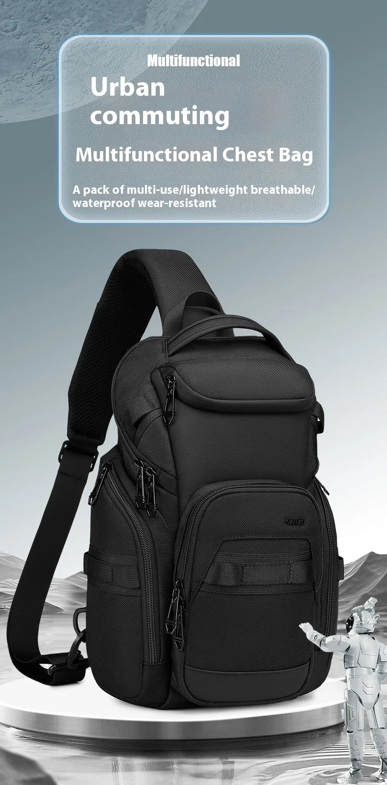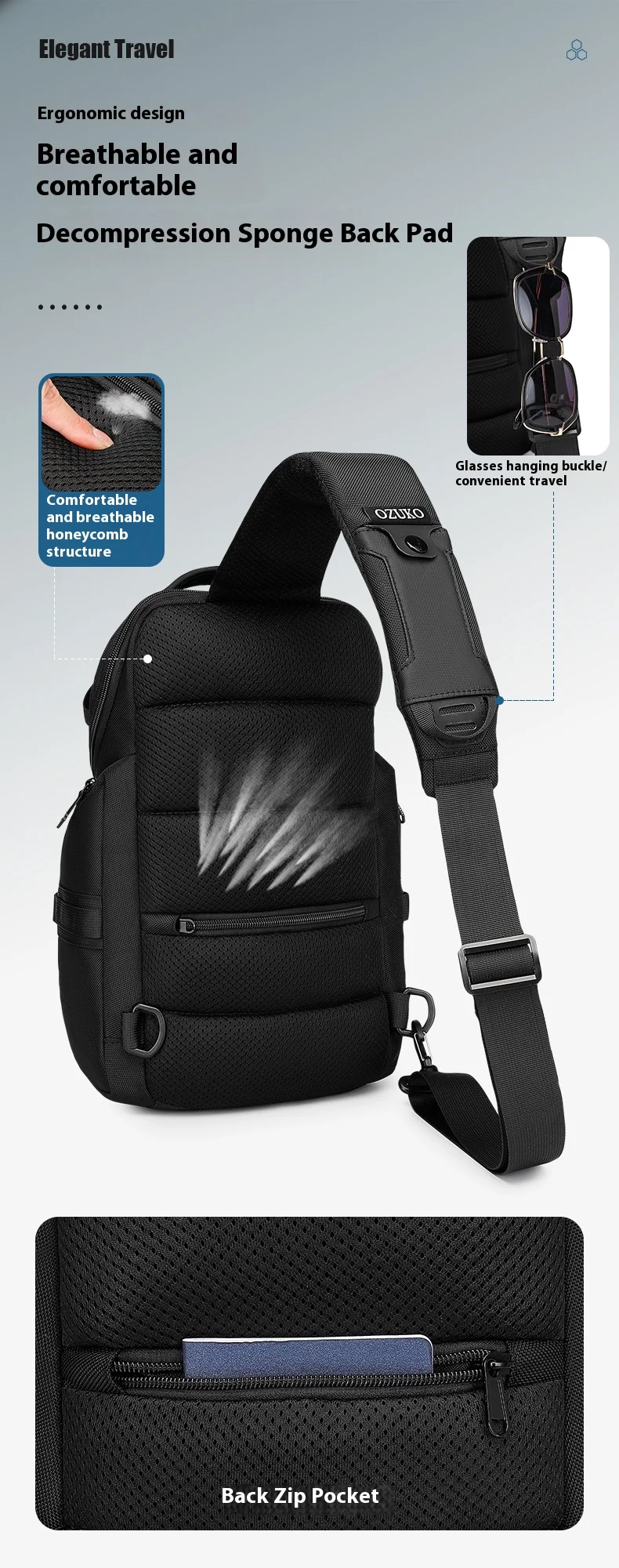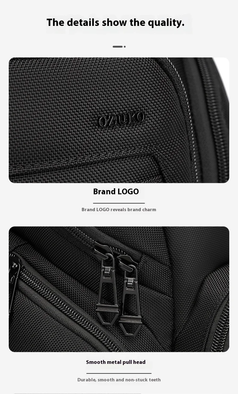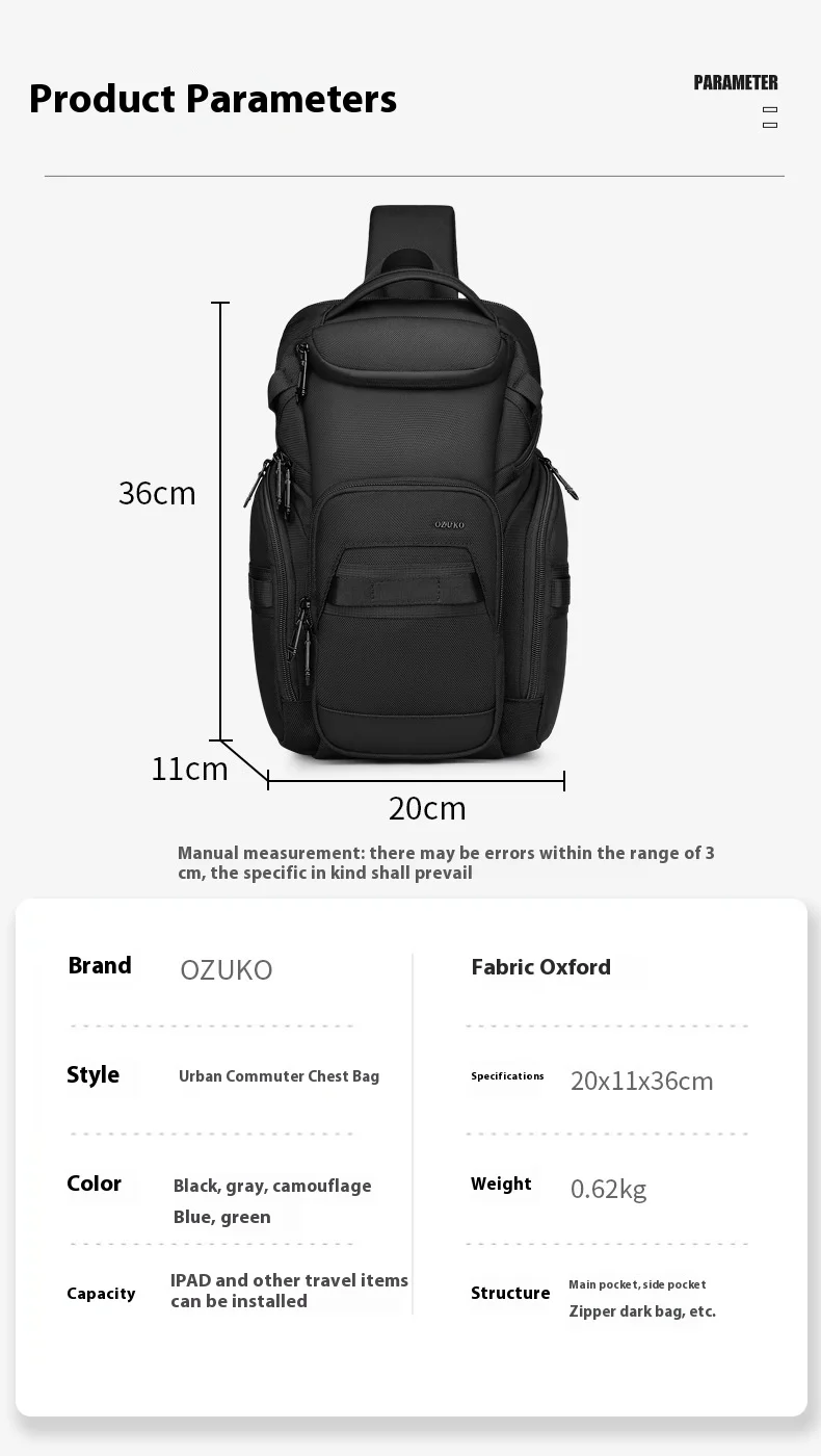 OZUKO Business Commuter Men's Chest Bag Fashion Multi-functional Shoulder Bag Lightweight Travel Waterproof Crossbody Bag