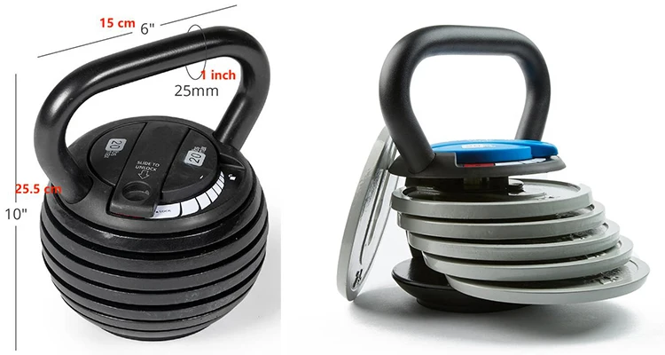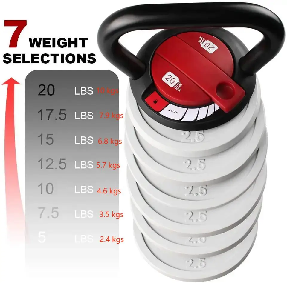 Az állítható Kettlebell kiváltja több kettlebell beszerzésének szükségességét. Egyetlen 9 kg-os kettlebell 1,3 kg-os lépésekben 7 különböző súlylehetőséget kínál, hogy évekig sokféle gyakorlatot lehessen vele végezni.