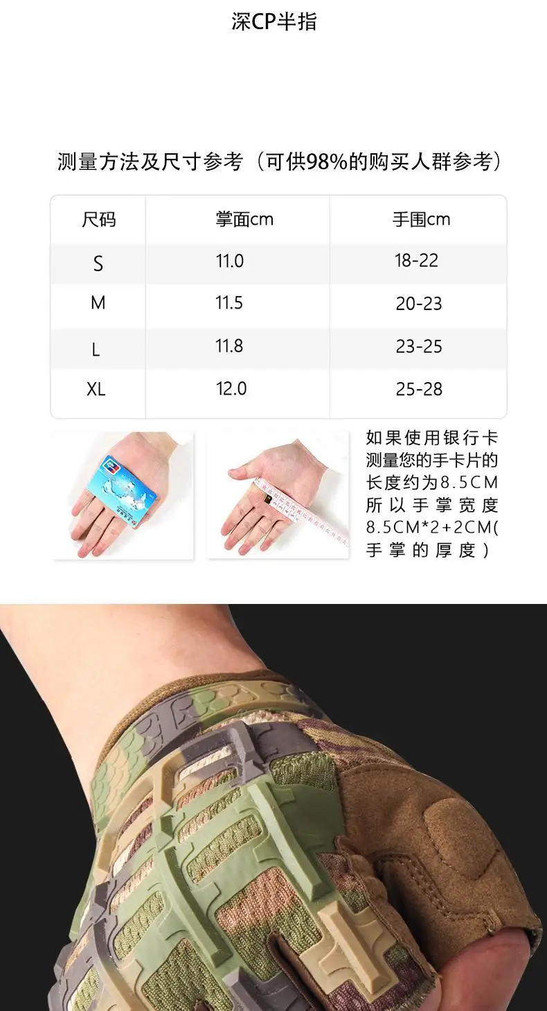 Méret-összehasonlító táblázat, a következő fizikai információkkal: S méret: Tenyérméret 11,0 cm, kézkerület 18-22 cm. M méret: Tenyérméret 11,5 cm, kézkerület 20-23 cm. L méret: Tenyérméret 11,8 cm, kézkerület 23-25 cm. XL méret: Tenyérméret 12,0 cm, kézkerület 25-28 cm.